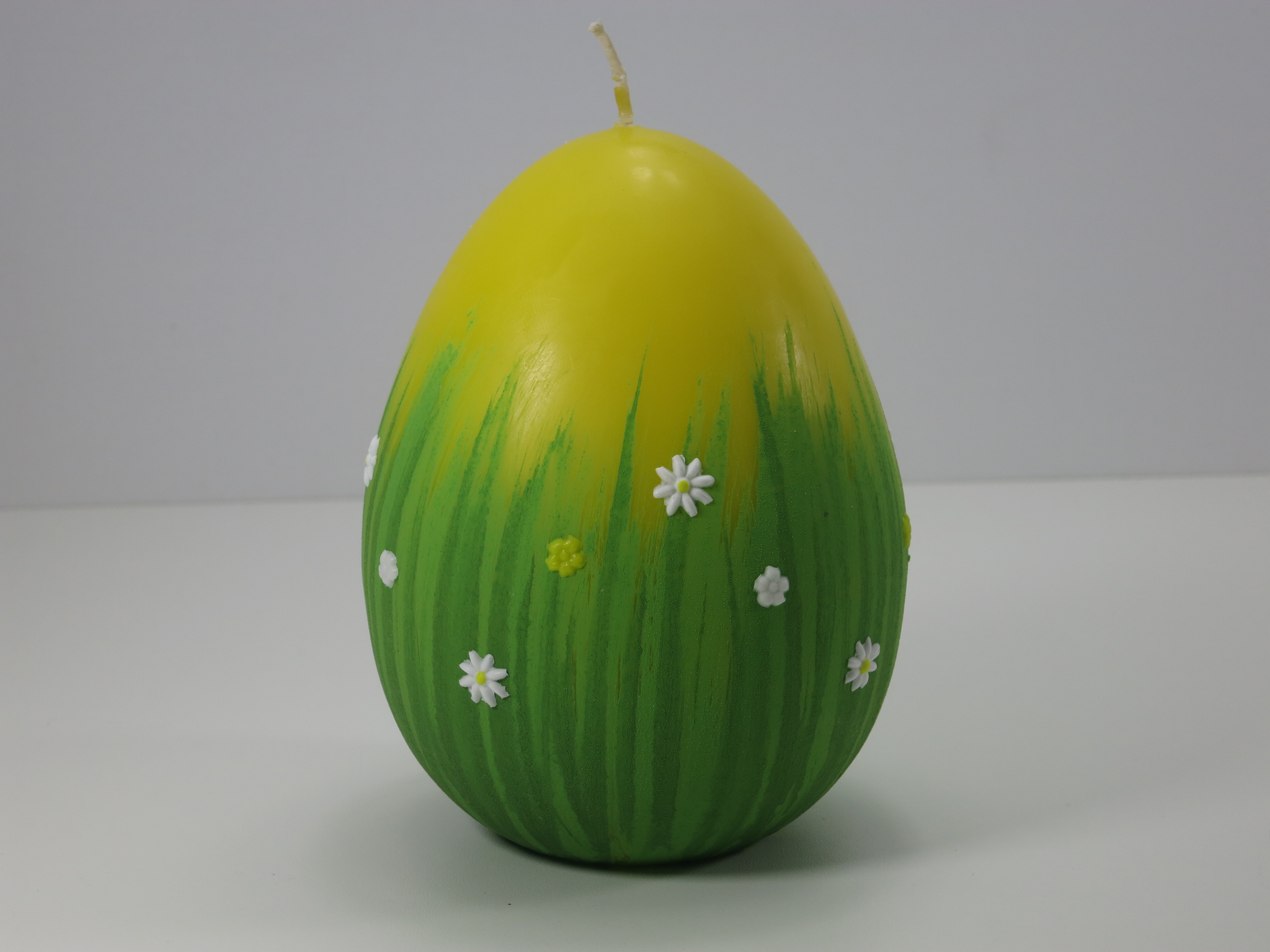 Ei Kerze Frühling Gr. 4, Osterkerze, Nature, Größe ca. 140 x 95 mm, Brenndauer ca. 65 Stunden, Farbe zitrone, Deutsches Produkt, Kerzen Wenzel