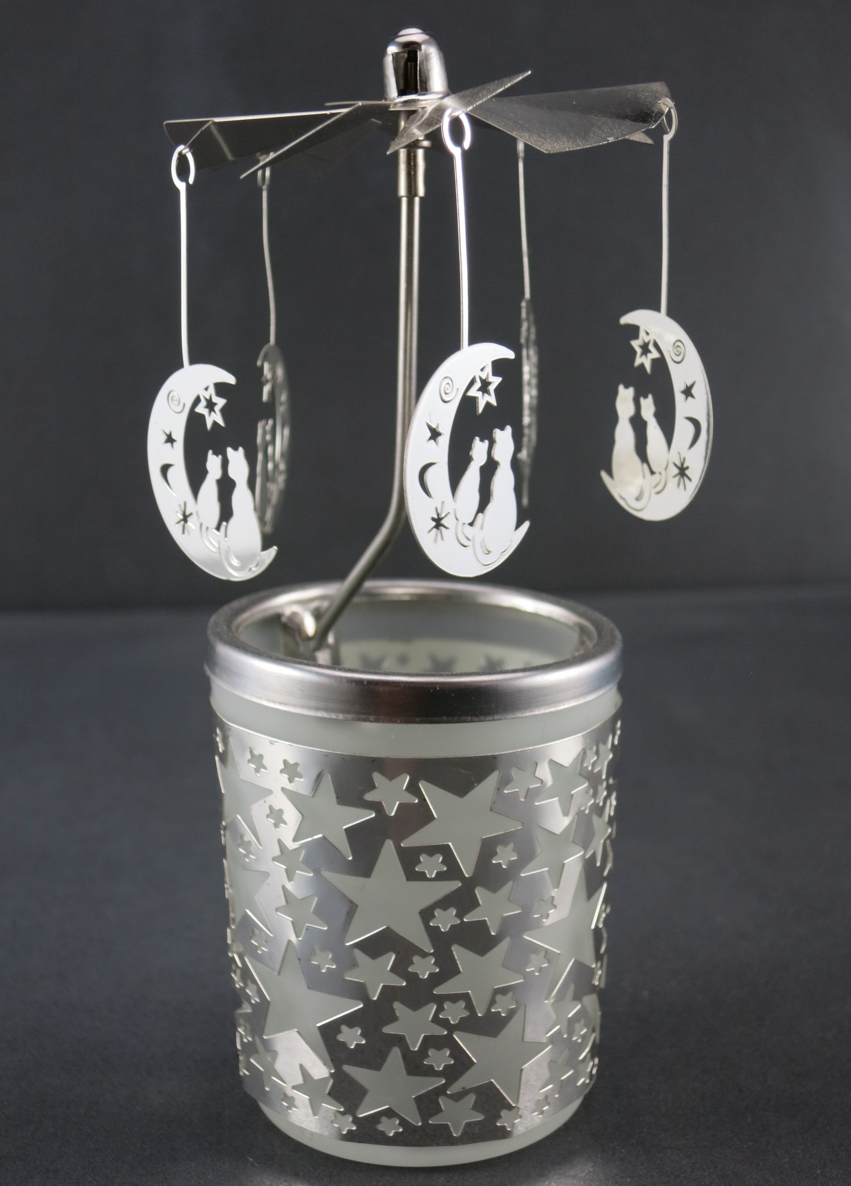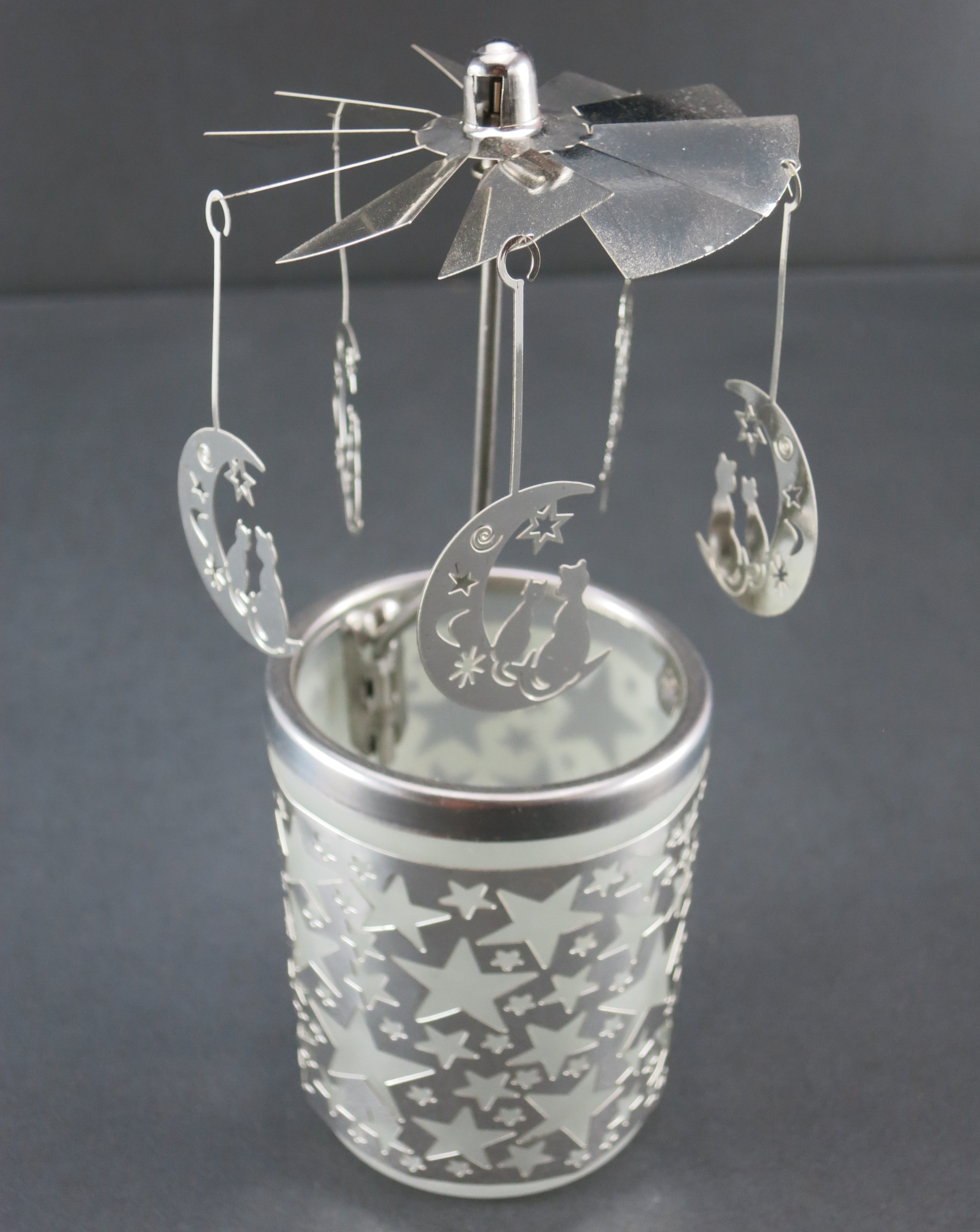 Mobile Preview: Glas Karussell Moon und Cat, Glas Karussell Windlicht