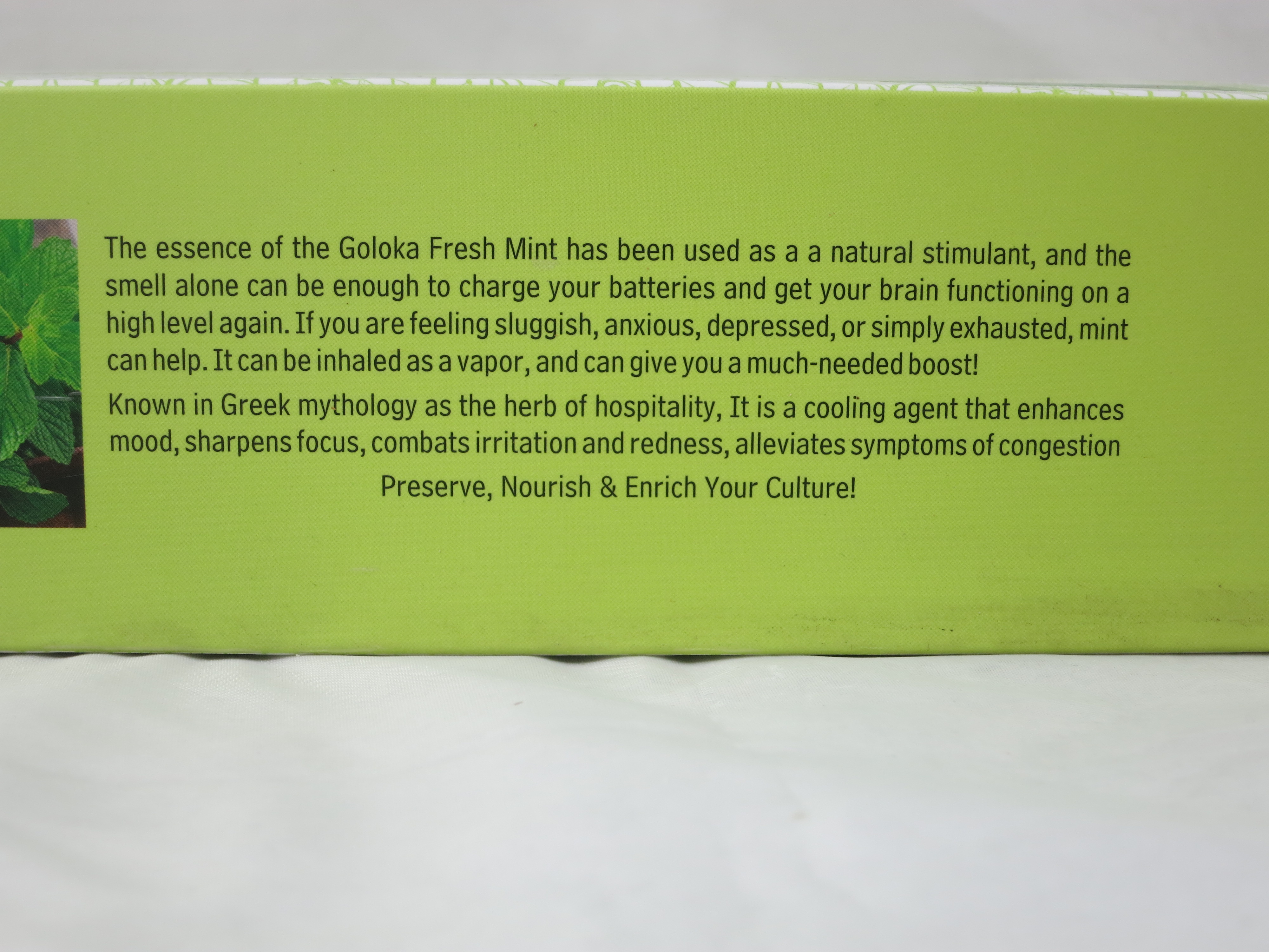 Goloka Fresh Mint, Masala Räucherstäbchen, Inhalt 15 g, Duftnote süßkrautiger und harziger, mentholhaltiger Duft. Goloka frische Minze Masala Räucherstäbchen ein beliebter Duft zum Wohlfühlen.