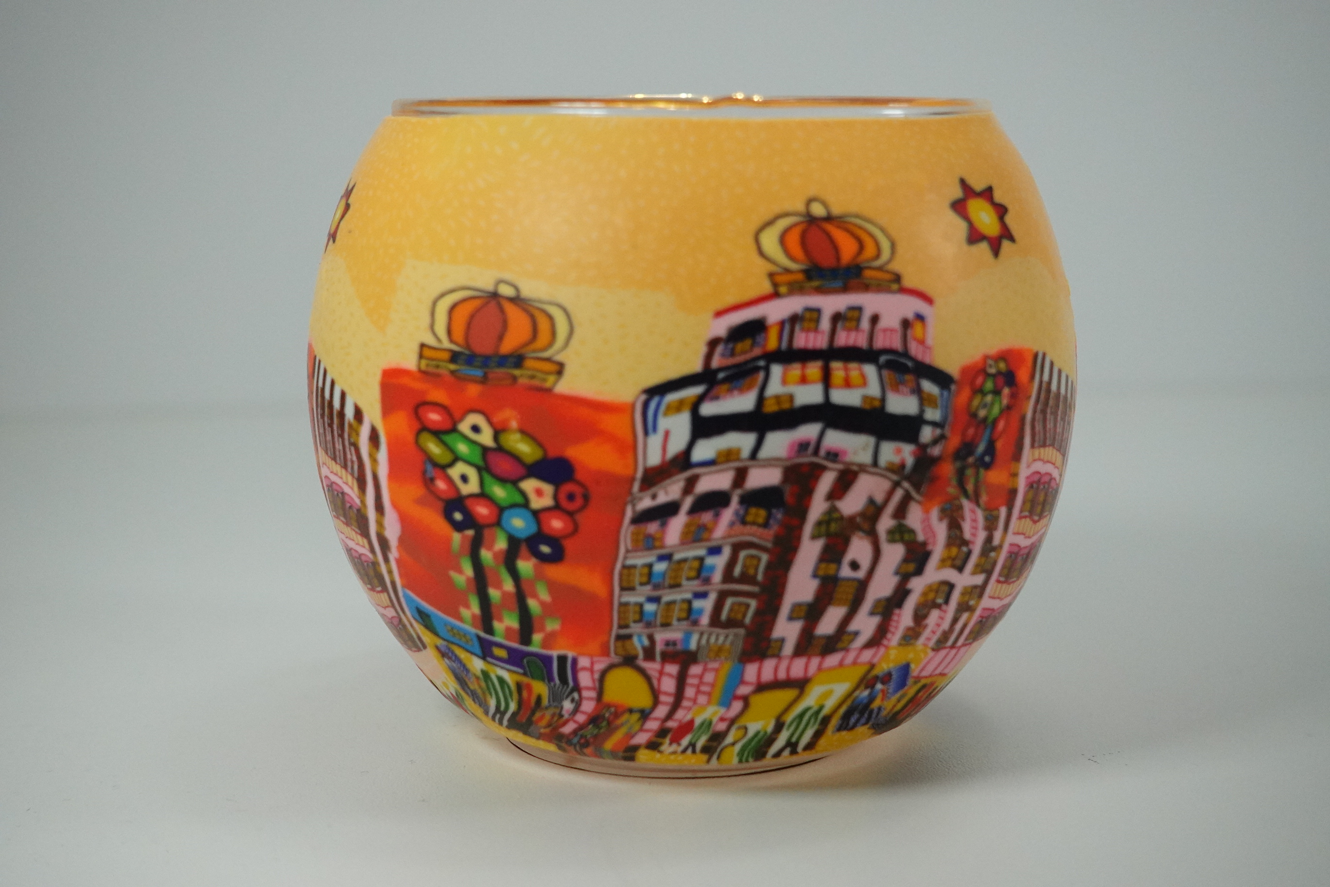 Leuchtglas Nr. 109325 bekanntes Künstlermotiv gelb, Windlicht