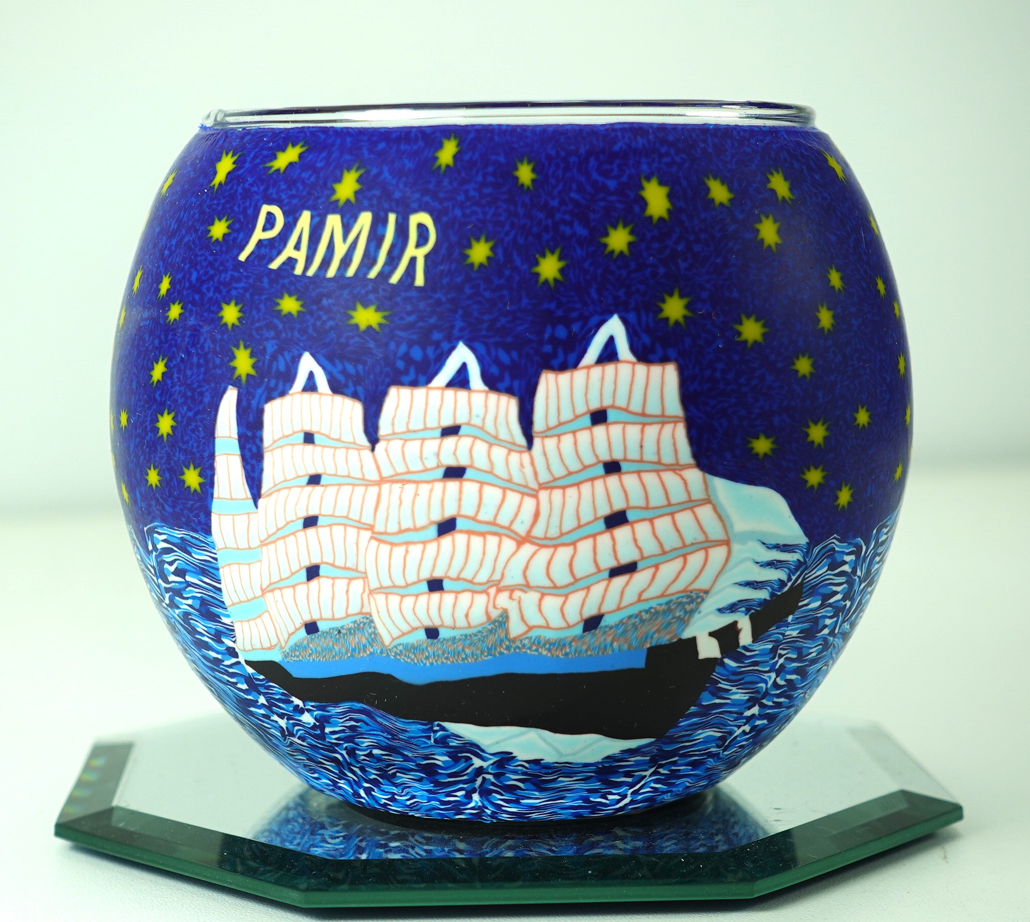 Leuchtglas Nr. 109472, Künstlermotiv Schiffe, Pamir blau, Windlicht