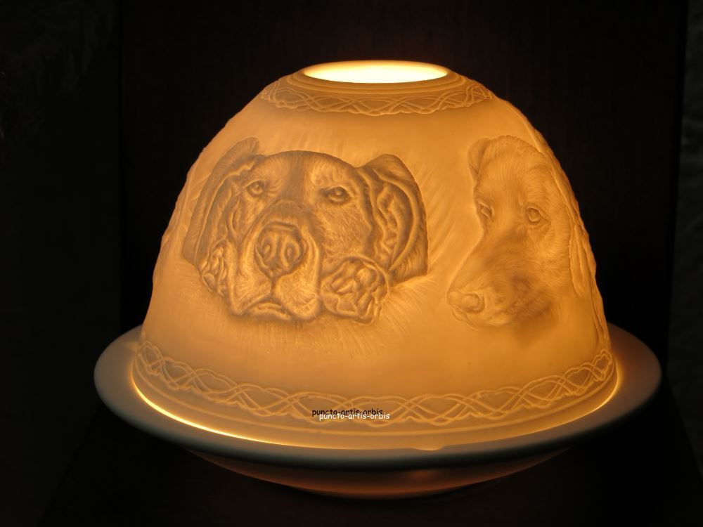 Preview: Starlight Windlicht Nr. 121, Hunde. Porzellan Windlicht