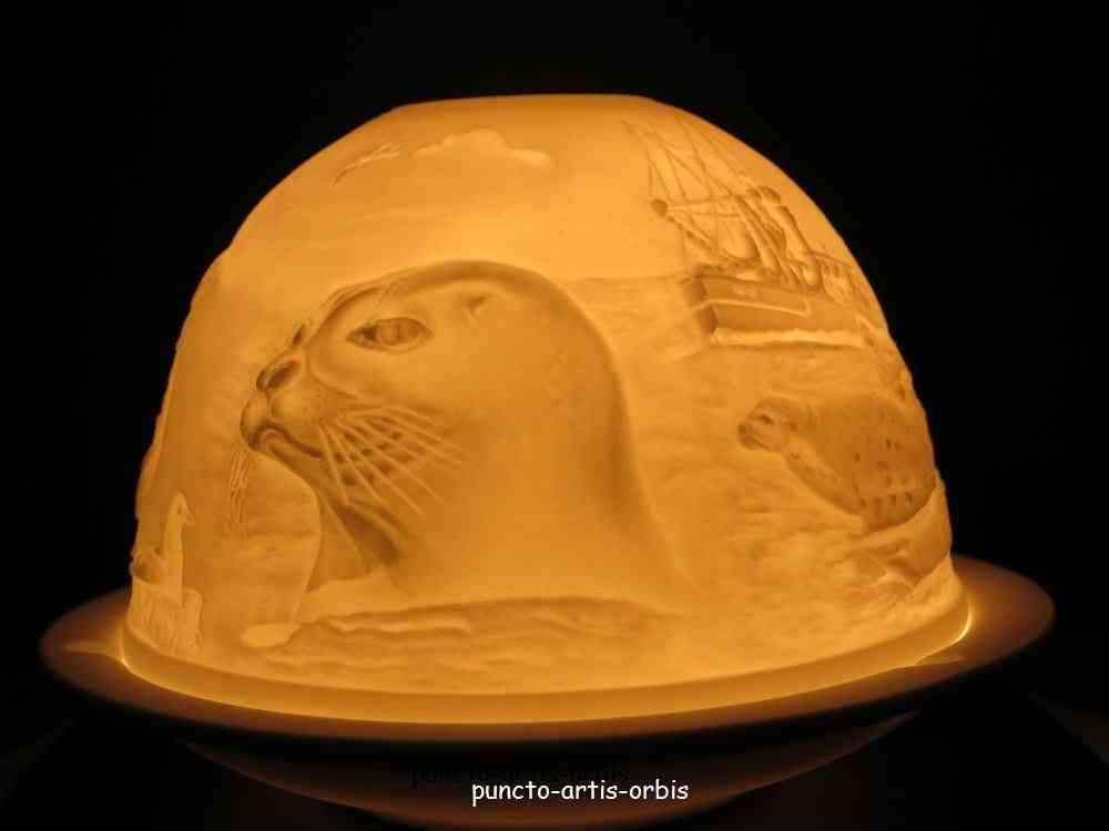 Starlight Windlicht Nr. 192 Seehund an der Küste, Porzellan Windlicht