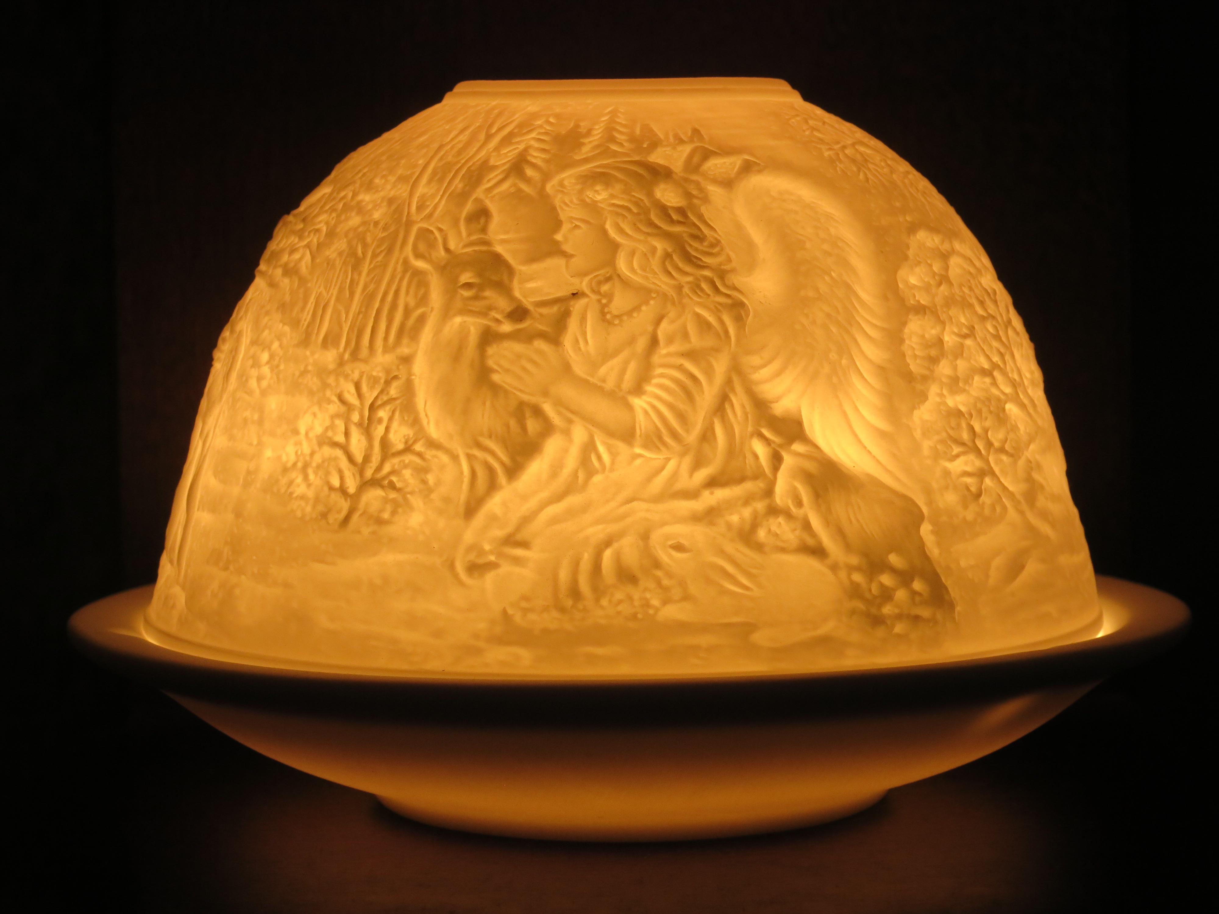 Starlight Windlicht Nr. 340, Schutzengel der Waldtiere, Porzellan Windlicht