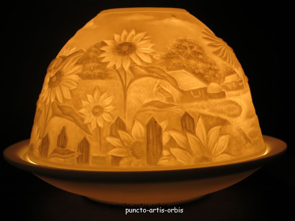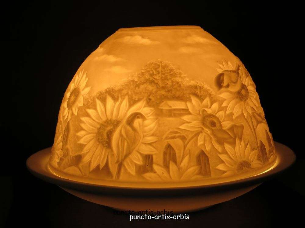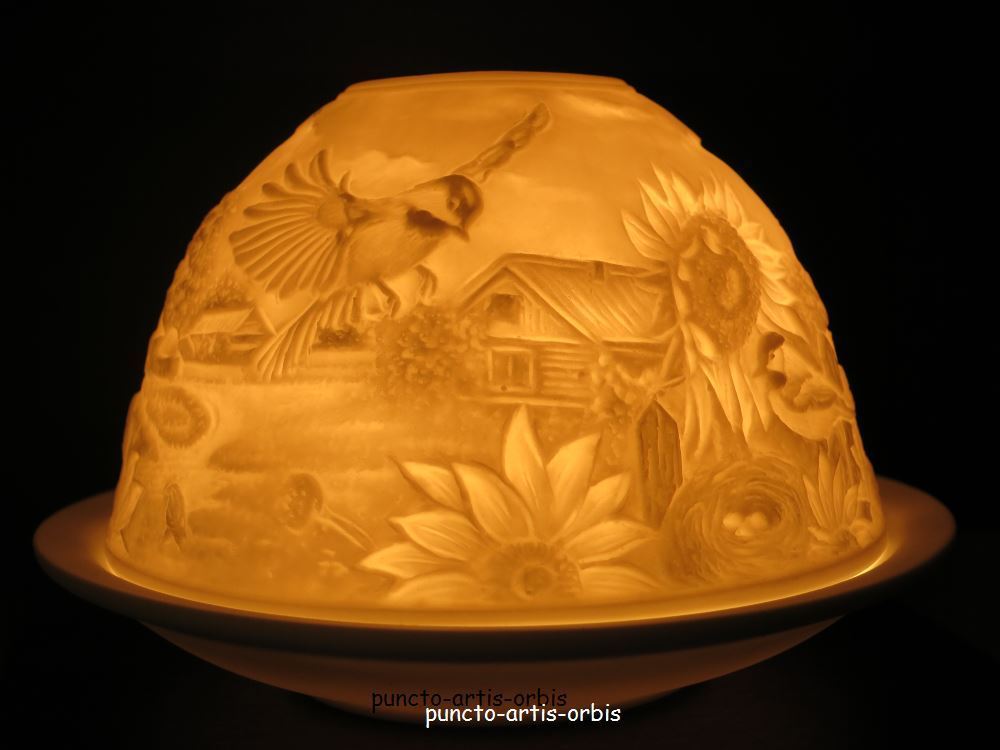 Starlight Windlicht Nr. 344, Vögel auf Sonnenblume, Porzellan Windlicht