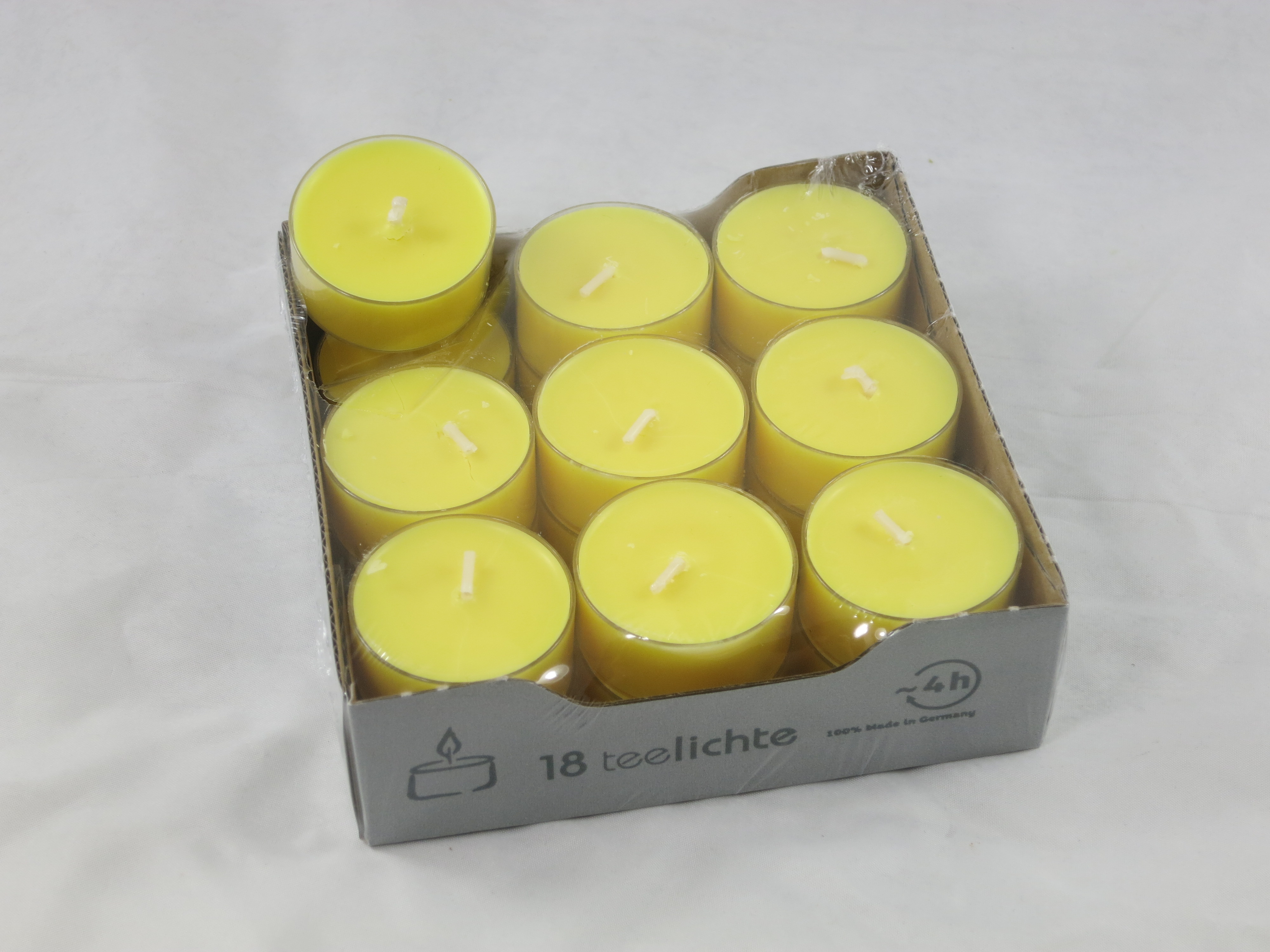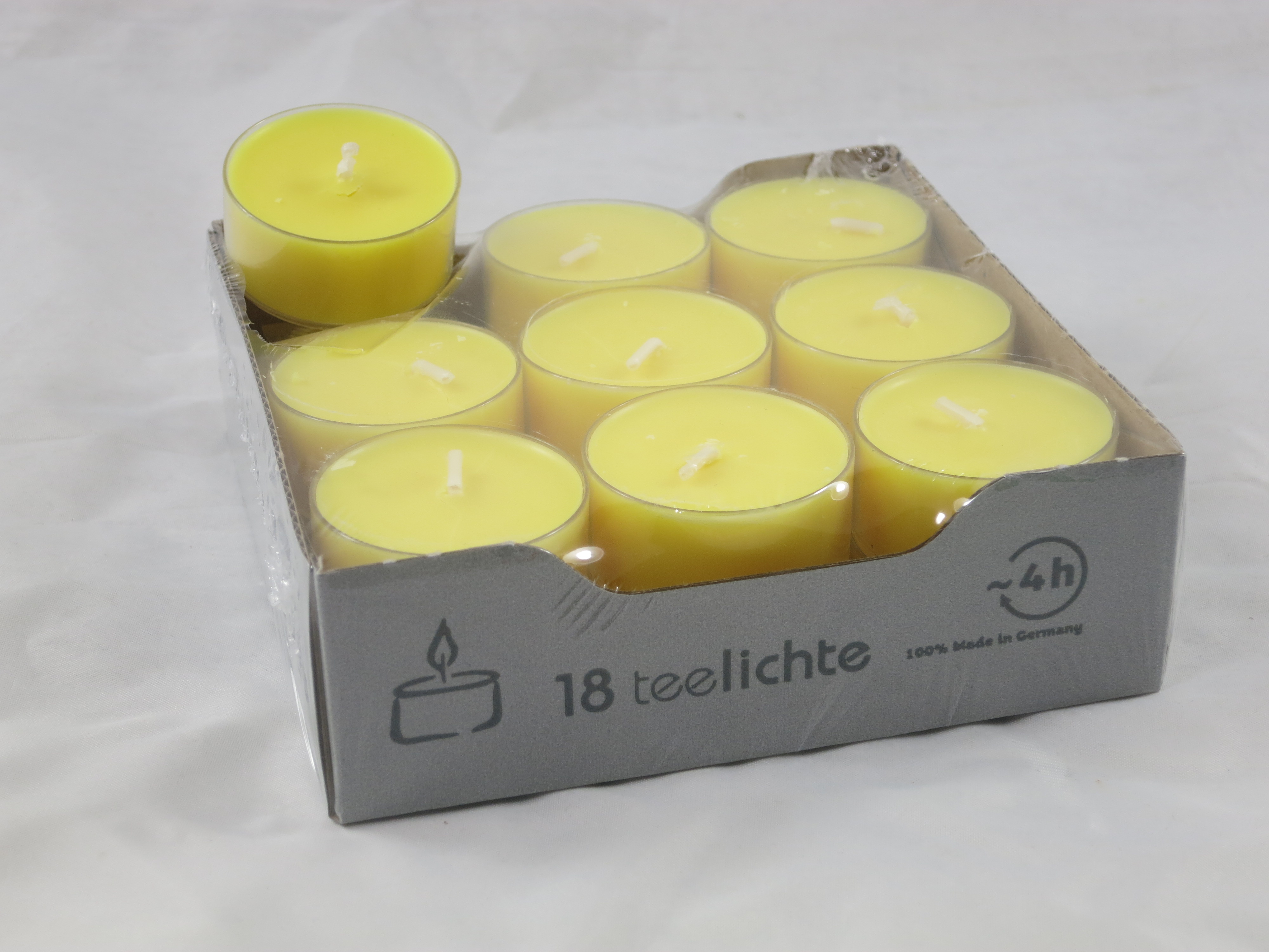 Teelicht Duft Citronella gelb, Brenndauer ca. 4 Std., Inhalt 18 Stück Teelichter pro Packung, Deutsches Produkt