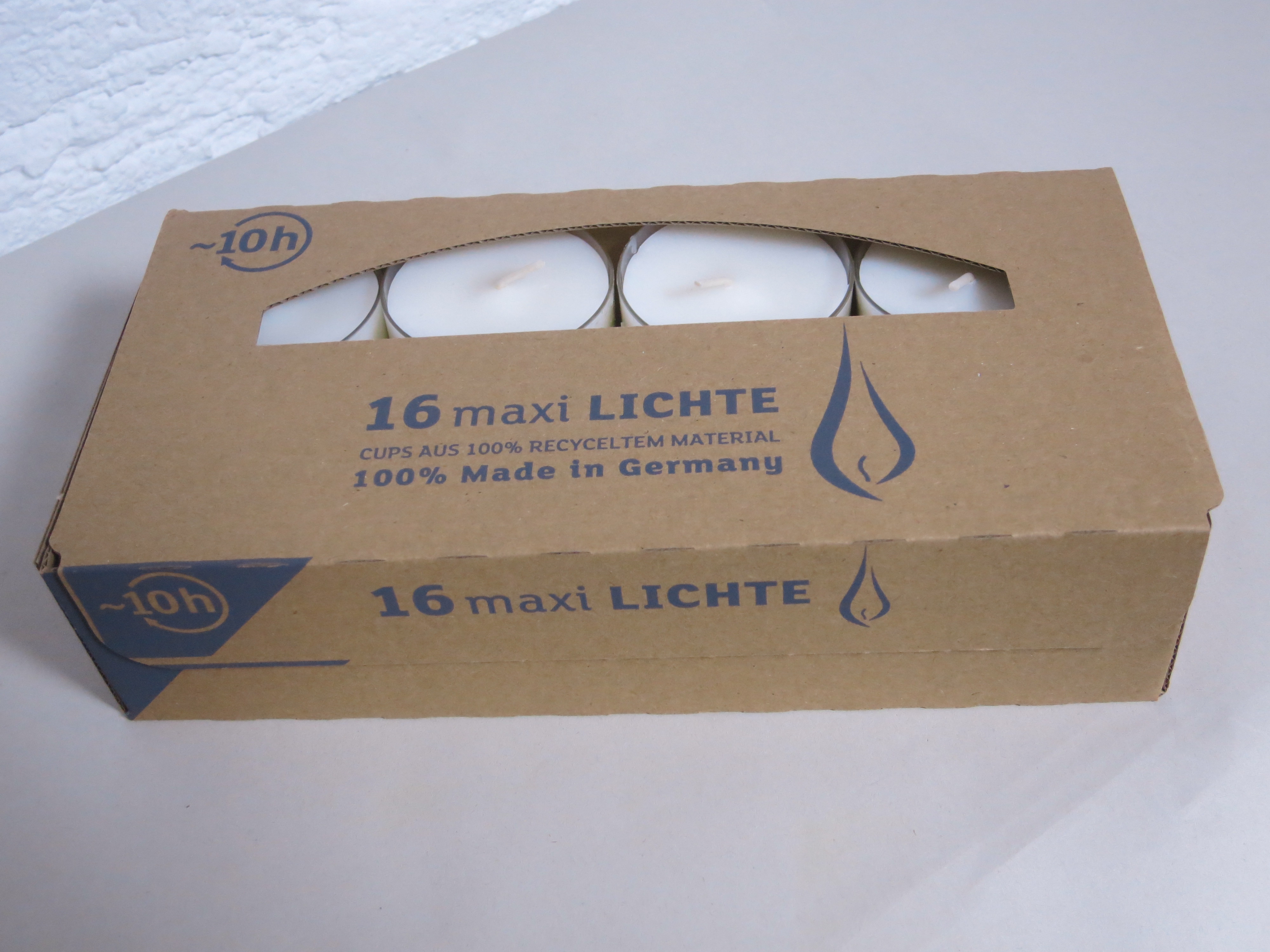 Teelicht MAXI lights, 16 Teelichter / Stück pro Packung, Deutsches Produkt, Farbe weiss / natur
